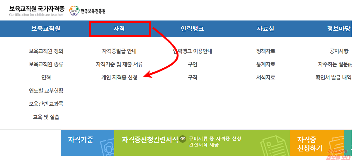 1. 보육교직원 국가자격증 사이트로 이동한다.