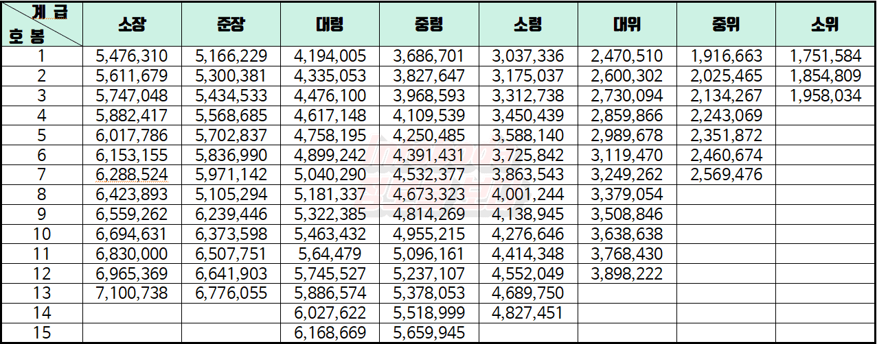 2022 직업군인 월급(하사관, 장교) 안내