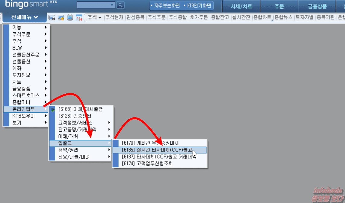 KTB 투자증권 안내에는 모바일 어플 MTS에서도 가능한 것으로 나오지만 메뉴 항목은 동일 증권사 내 이동만 가능해서 홈페이지에서 진행합니다.
