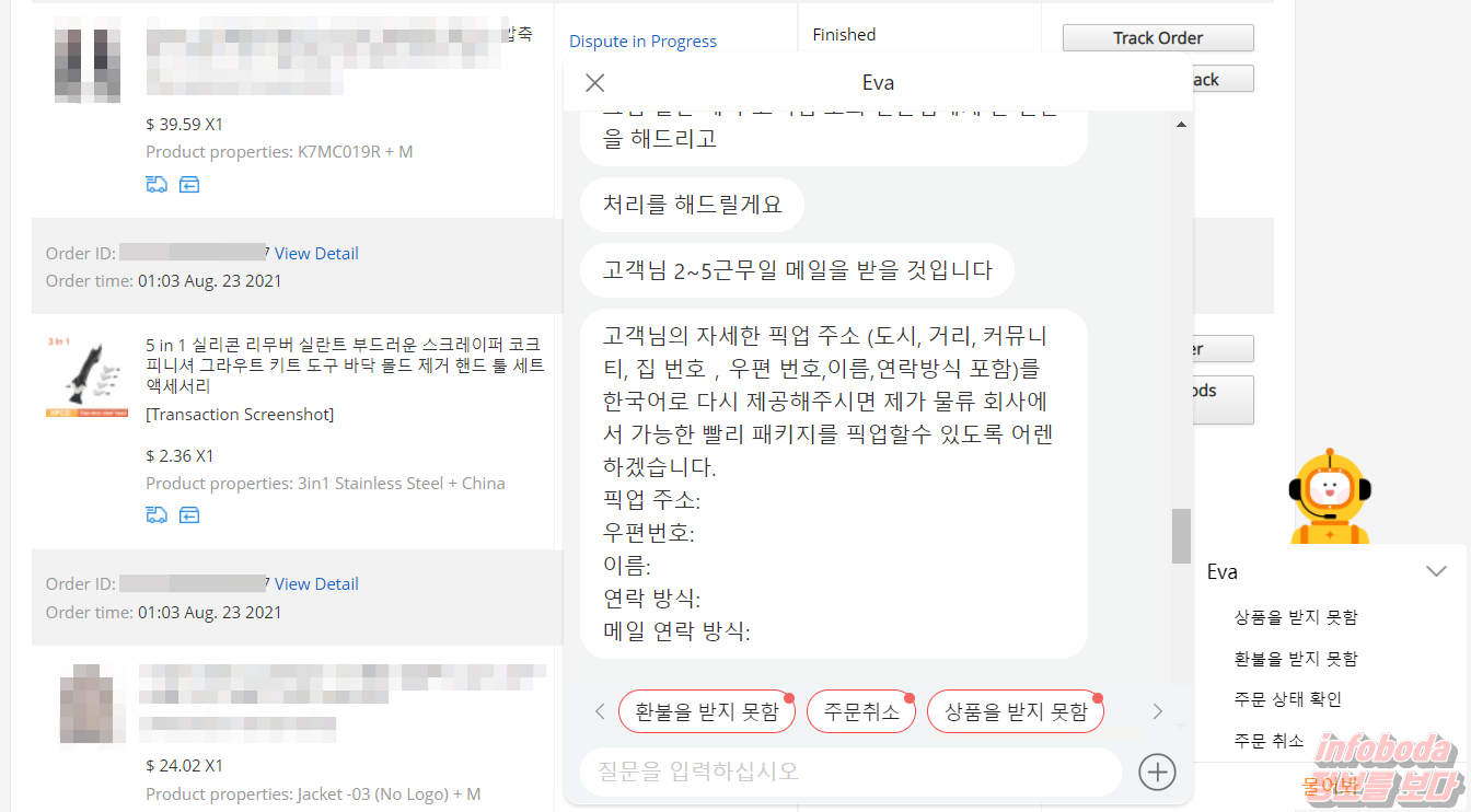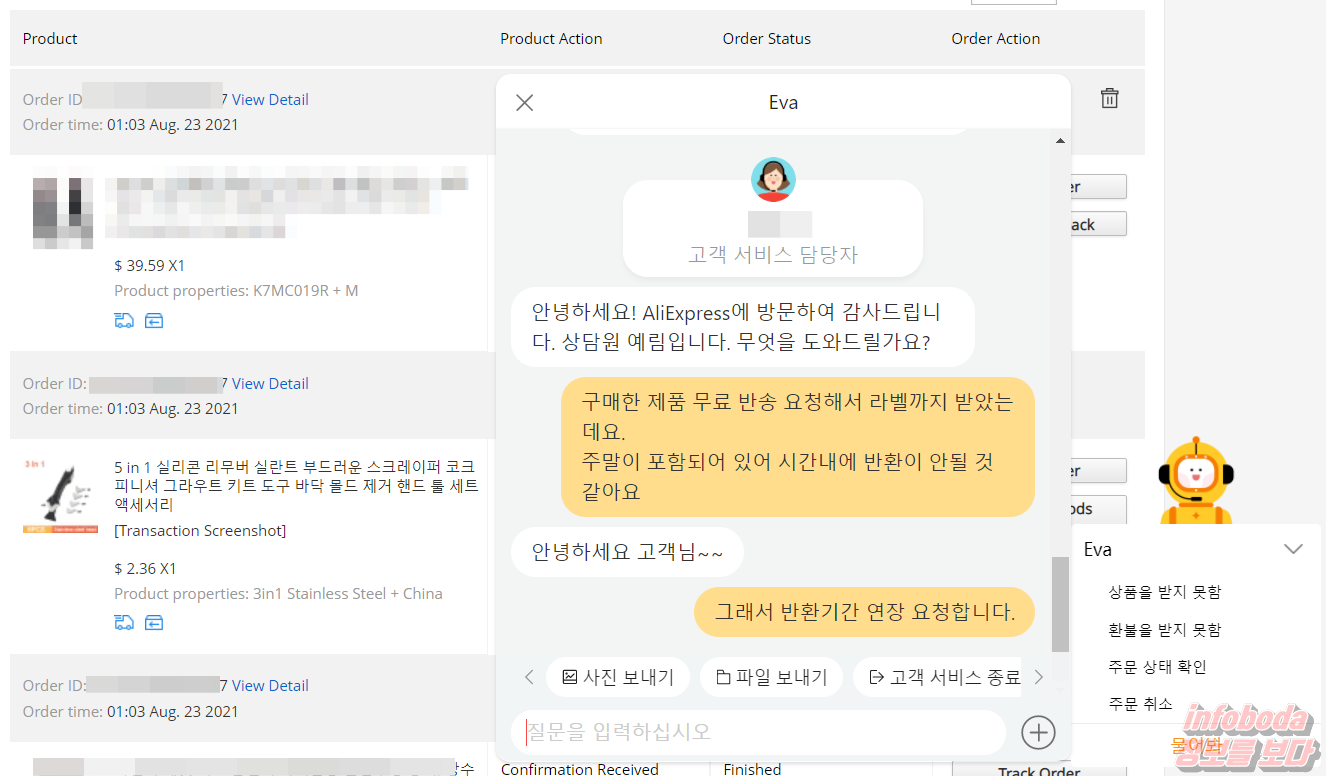 알리익스프레스 환불 고객센터 상담원 채팅 방법